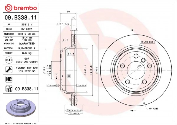 BMW 420 DIF6032 2013 CAMPANA FRENO DE MANO Med. 185 x 38